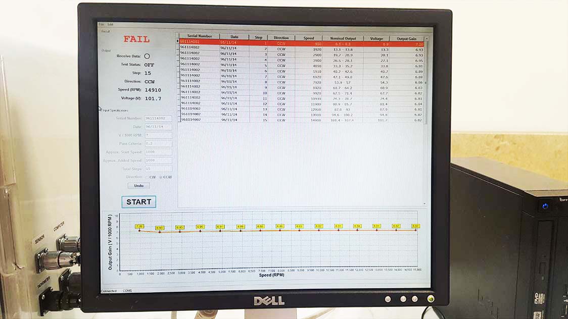 • اعمال سرعت تا 18,000 RPM و اندازه گیری ولتاژ خروجی بر حسب سرعت