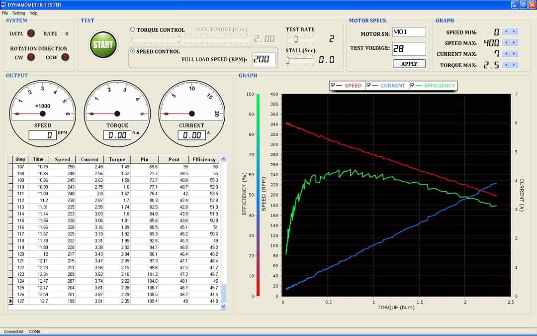 - دارای دو حالت تست: کنترل گشتاور و کنترل سرعت